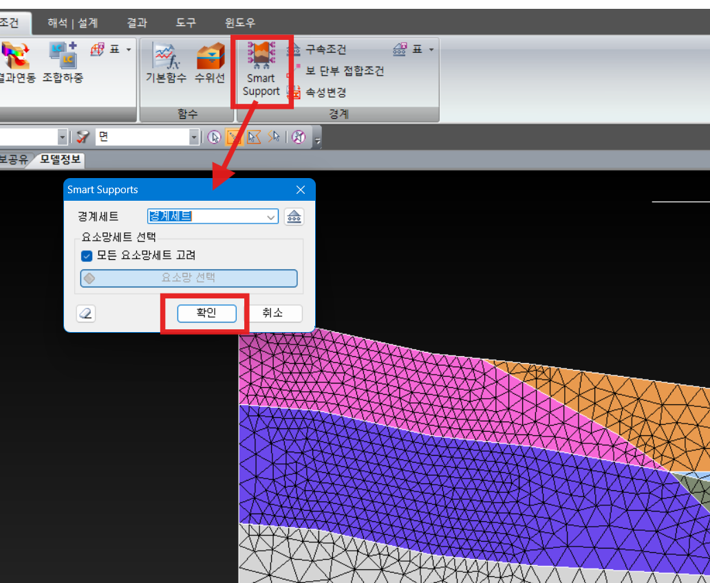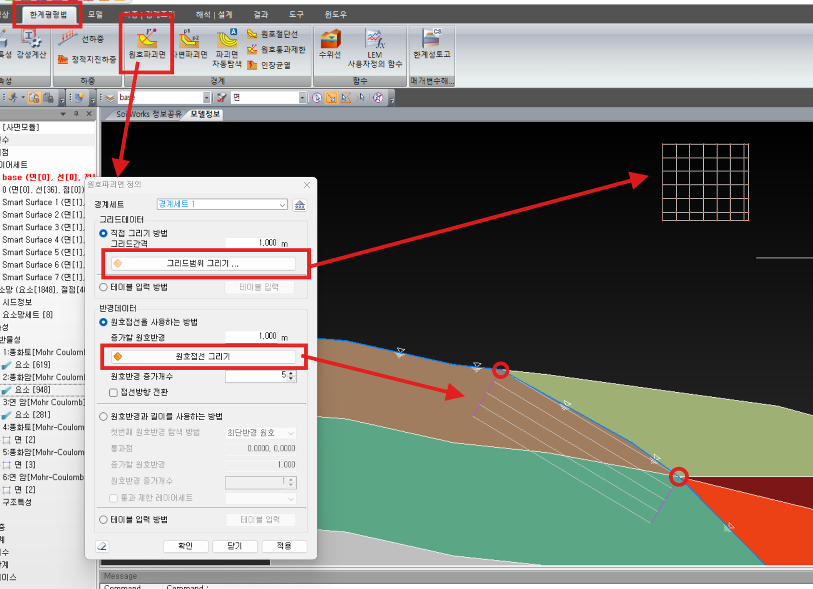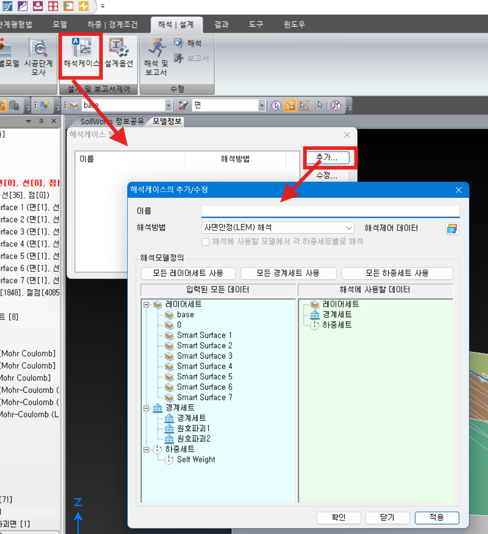 순서를 잘못하면 해석 결과가 꼬일 수 있으니, 반드시 Mohr-Coulomb → 요소망 생성 → LEM 모델 적용 순서를 지켜주는 게 중요하다.